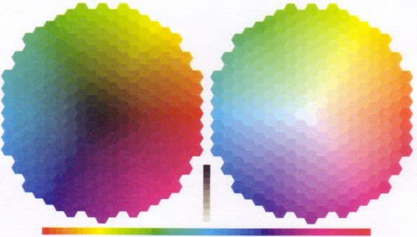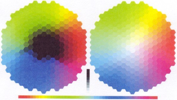 jsem vytiskl testovací obrazec bez profilů ICC (správy barev). Barvy jsou posunuté, plně nedopovídají předloze. Ovšem